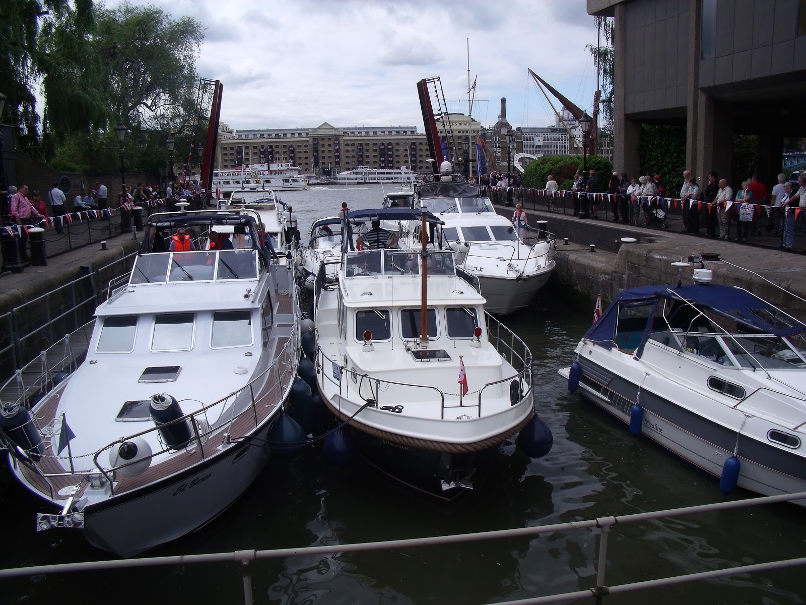 Smaller vessels queueing to go through the lock into St Katherine's dock to moor before joining the flotilla on Sunday. |