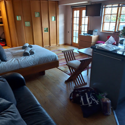 I am staying in a studio flat for the week. Thought there was no bathroom at first. Just a strange wooden structure, which turned out to be a wet room. It wasn't obvious where the door to the bathroom was as all the panels were the same. Not easy, especially at night in the dark!